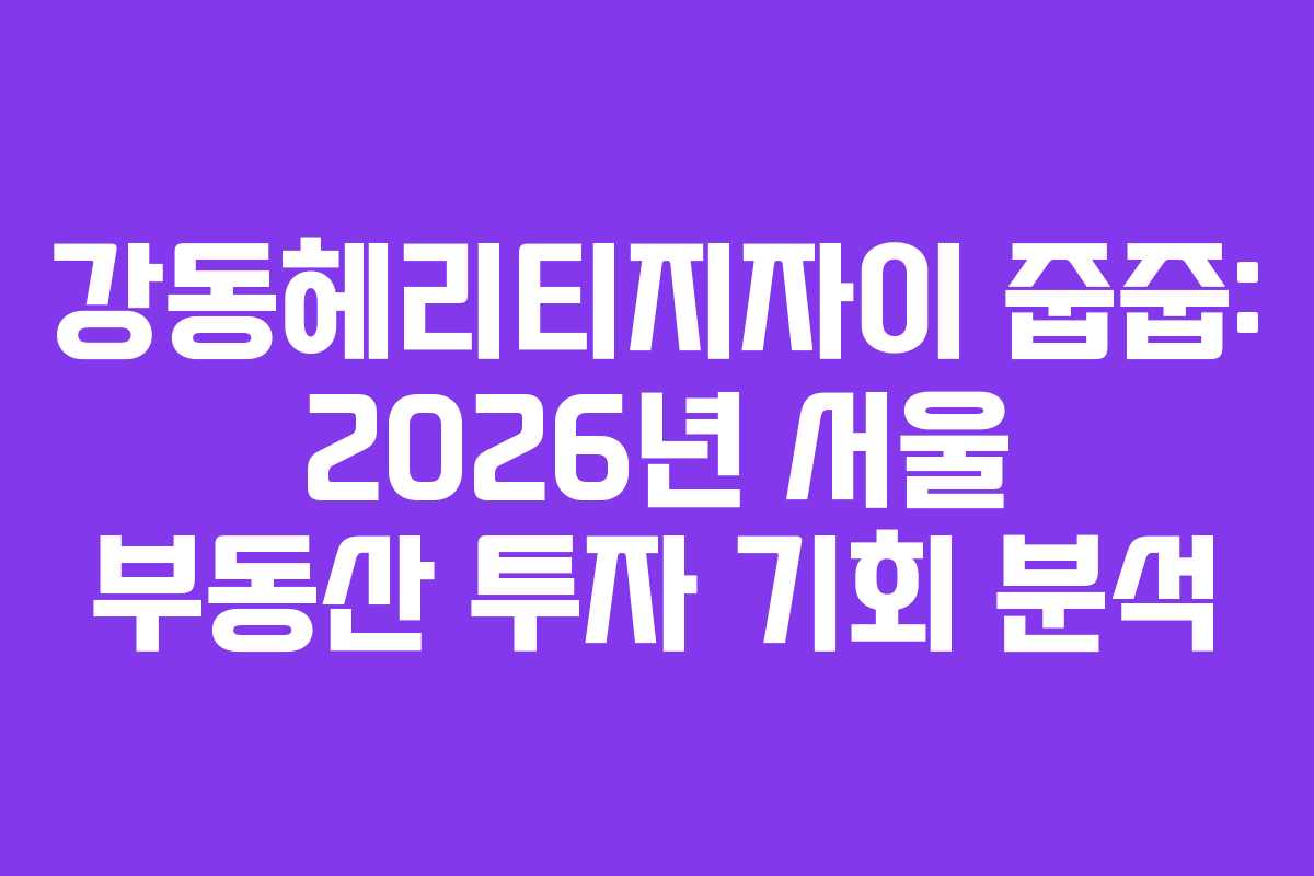 2026년 4월, 서울 강동구의 강동헤리티지자이 줍줍은 많은 투자자들의 이목을 끌고 있습니다. 이 아파트가 서울의 마지막 내 집 마련 기회로 주목받고 있는 이유와 그 가치를 심도 있게 분석해 보겠습니다.