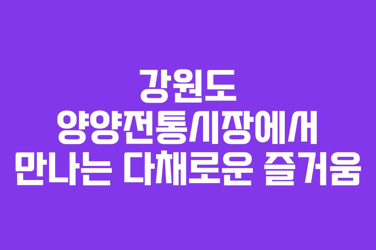 강원도의 아름다운 자연과 함께 전통시장의 매력을 느낄 수 있는 양양전통시장은 매달 정기적으로 열리는 오일장으로 여행객들에게 특별한 경험을 제공합니다. 이곳에서 다양한 먹거리와 특산물을 만날 수 있으며, 시장의 생동감 넘치는 분위기를 즐길 수 있습니다. 특히 장날에는 많은 사람들이 모여들어 더욱 활기찬 풍경을 연출합니다.