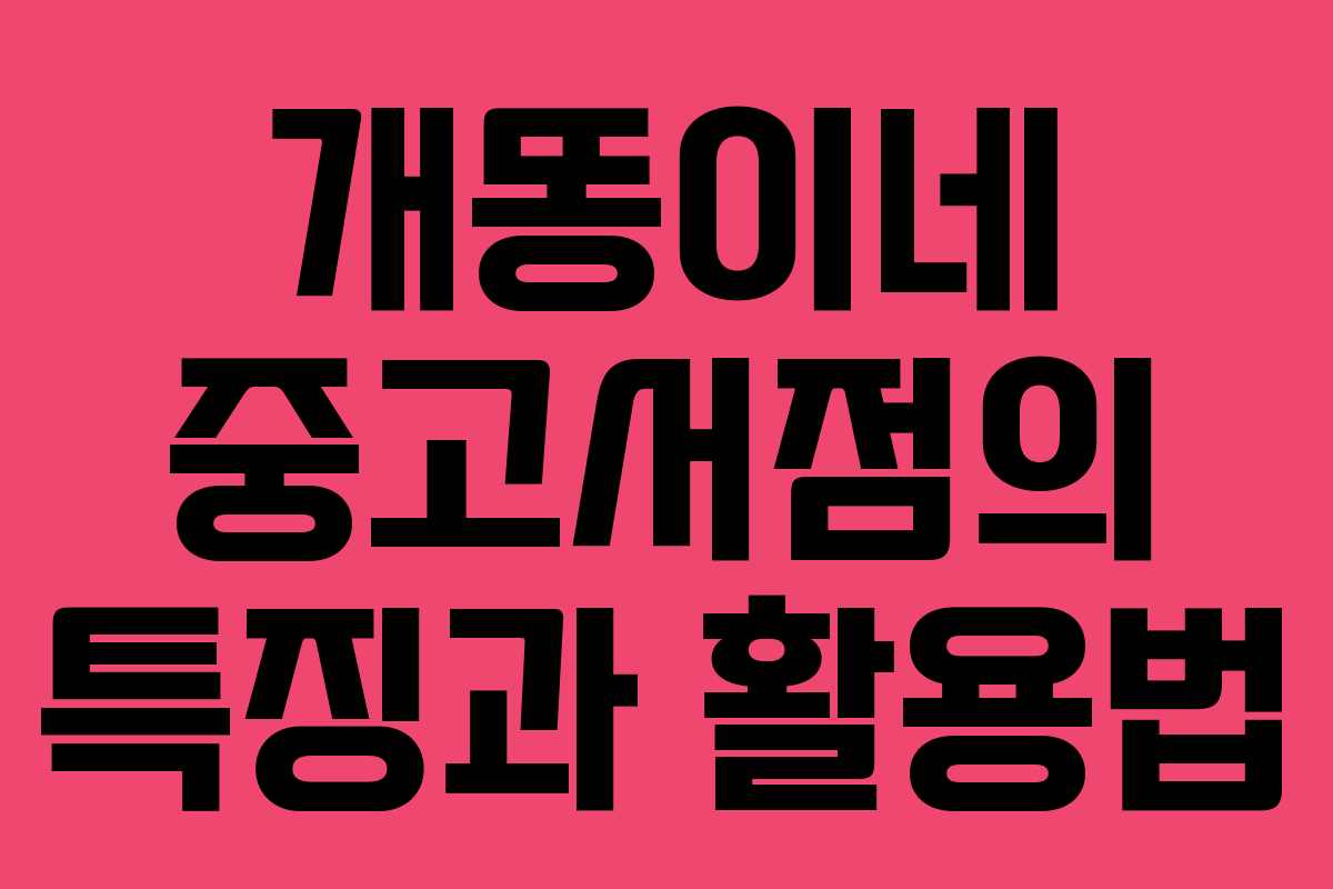 중고서점 ‘개똥이네’는 많은 사람들에게 익숙한 이름으로, 중고책을 사고팔 수 있는 곳입니다. 알라딘과 같은 다른 중고서점과 유사한 점도 있지만, 개똥이네만의 독특한 특징이 존재합니다. 이번 포스팅에서는 개똥이네 중고서점의 장점과 책 거래 방법에 대해 자세히 알아보겠습니다.