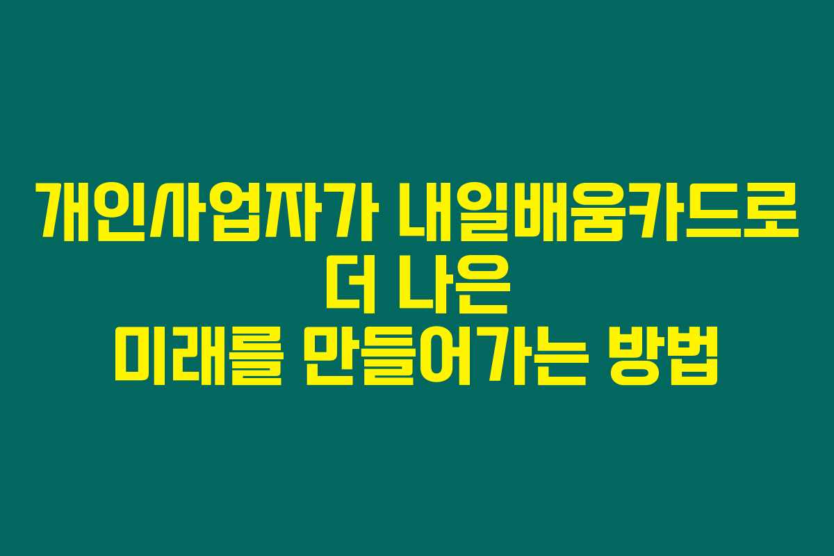 내일배움카드는 개인사업자 및 구직자에게 국가에서 제공하는 직업 교육 지원 프로그램으로, 다양한 과정을 통해 역량 강화를 도울 수 있습니다. 특히 개인사업자에게는 다음과 같은 장점이 눈에 띕니다.
