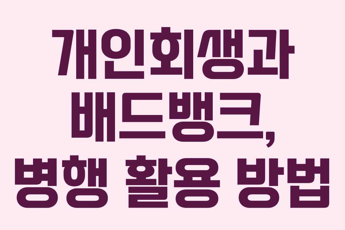 경제적 어려움에 처한 많은 분들이 개인회생 및 배드뱅크 제도를 통해 채무를 조정하려고 합니다. 이 두 가지 제도는 각각의 특징이 있으며, 병행하여 활용할 수 있는지에 대한 궁금증이 많습니다. 이번 글에서는 개인회생과 배드뱅크의 개념, 병행 활용 전략, 주의사항 등을 정리해보겠습니다.