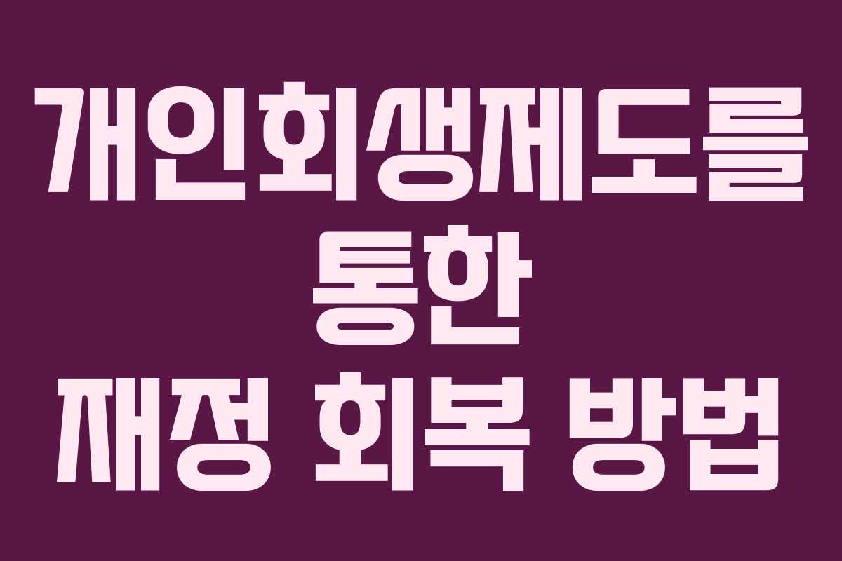 재정적 어려움을 겪고 있는 사람들에게는 다양한 해결책이 필요합니다. 특히 개인회생제도를 통해 부채를 관리하고 안정적인 생활을 회복할 수 있는 방법에 대해 알아보겠습니다.
