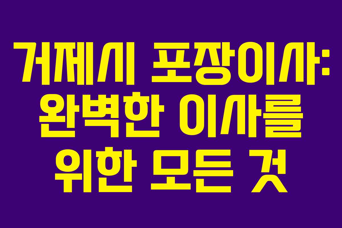 이사를 준비하면서 거제시의 포장이사 서비스를 통해 믿을 수 있는 업체를 선택하고, 안전하고 편안한 이사를 경험해 보세요. 지금 바로 무료 방문 견적을 신청하시면 최적의 이사 서비스를 받아보실 수 있습니다.