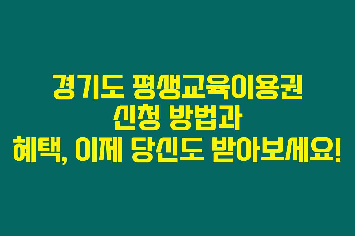 교육을 통해 더 나은 내일을 만들어 가는 것은 누구에게나 중요하잖아요? 지금 이 기회를 통해 여러분의 꿈을 다시 한번 펼쳐보세요. 경기도의 평생교육이용권을 통해 교육의 문이 활짝 열릴 것입니다.