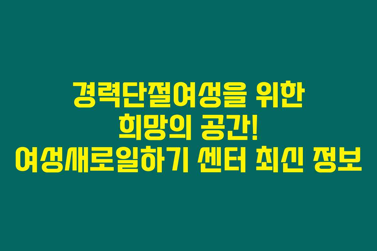 여성새로일하기 센터는 경력단절여성에게 희망의 공간이 되어줍니다. 이러한 프로그램을 통해 많은 여성들이 새로운 길을 열 수 있는 계기가 되길 바랍니다. 경력 회복의 여정을 시작하려는 모든 분들께 이 센터를 추천하는 바에요.