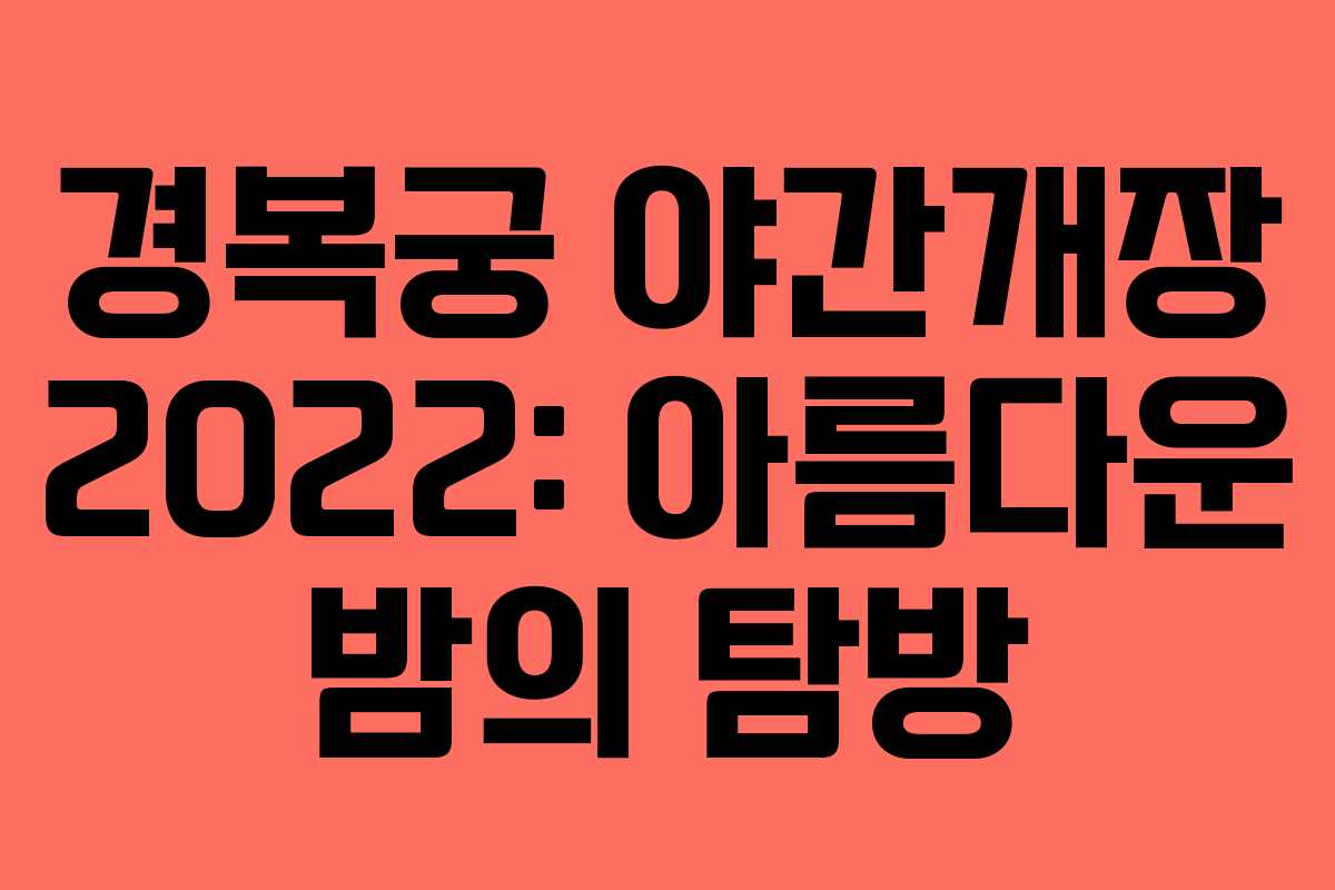 2025년 8월 기준, 경복궁의 야경을 만끽할 수 있는 ‘2022년 하반기 경복궁 야간개장’이 9월 1일부터 시작됩니다. 아래를 읽어보시면 예매 방법과 무료 관람 꿀팁을 확인할 수 있습니다.