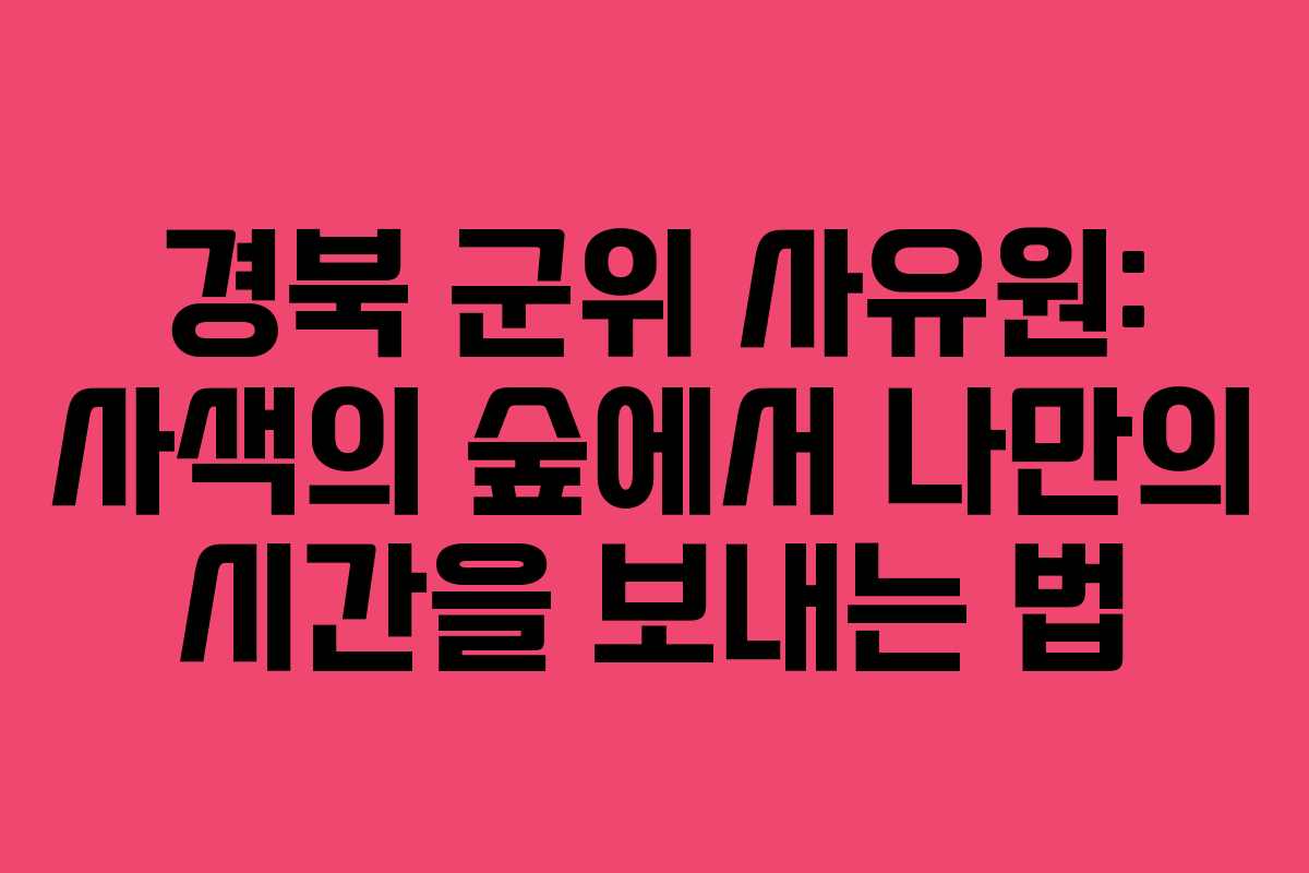 경북 군위에 위치한 사유원은 자연 속에서 자신을 돌아보며 사색할 수 있는 특별한 공간입니다. ‘사색의 숲’이라는 별칭이 붙은 만큼, 이곳은 단순한 관람을 넘어 깊은 생각과 정서를 자아내는 곳입니다. 사전 예약이 필수인 만큼, 방문을 계획하는 데 있어 필요한 정보를 정리해 보겠습니다.
