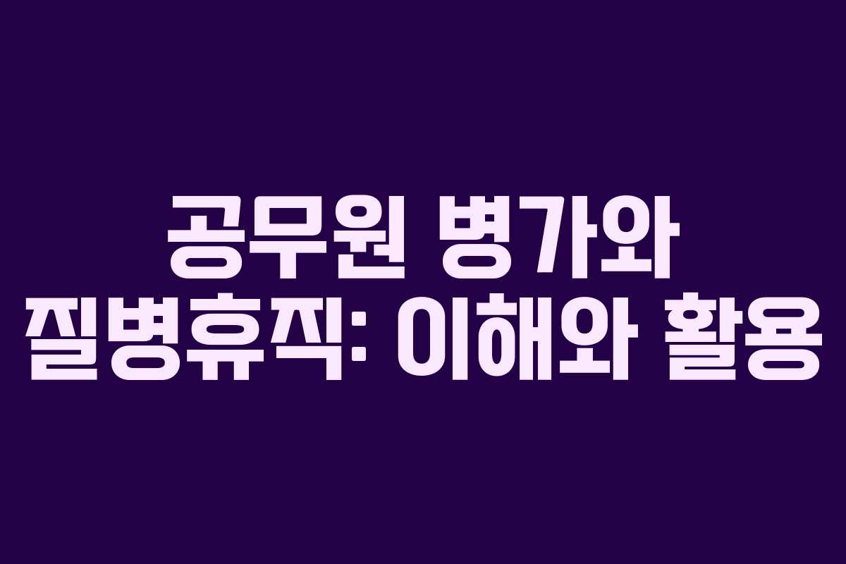 공무원으로서 병가는 중요한 휴가 제도입니다. 병가와 질병휴직의 차이, 사용 방법 및 유의사항에 대해 알아보겠습니다.