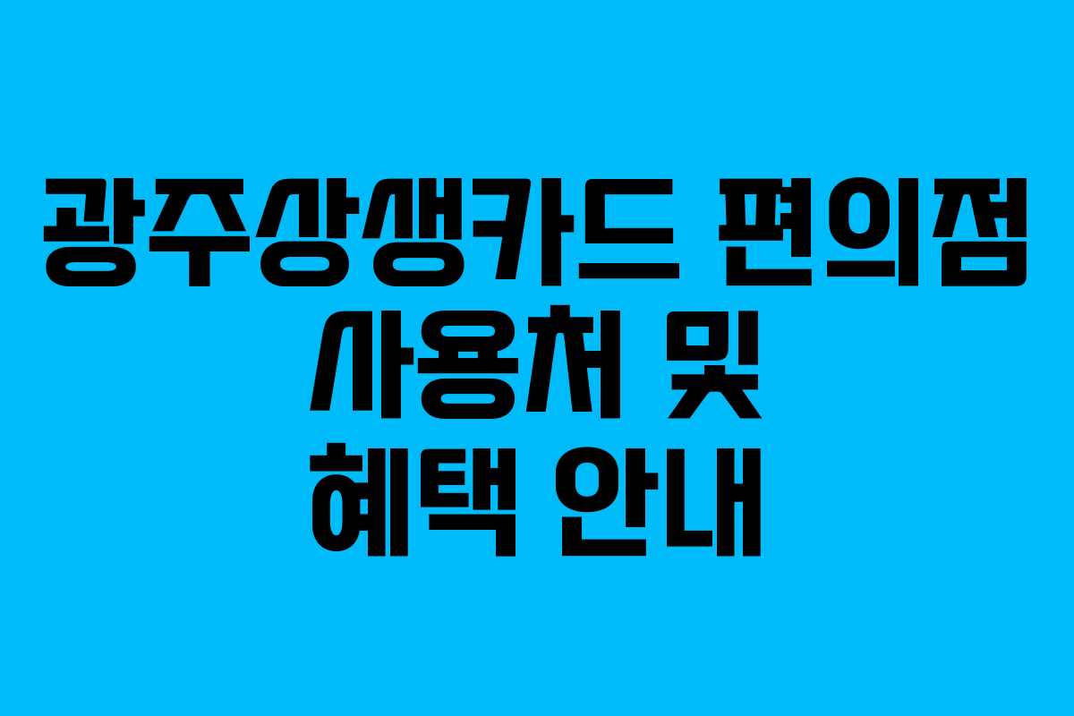 광주상생카드는 CU, GS25, 이마트24, 세븐일레븐 등 주요 편의점에서 사용 가능합니다. 단, 이들 편의점은 광주 내에서 IC카드 단말기가 설치된 가맹점이어야 하며, 연 매출 30억 원을 초과하는 매장은 사용이 제한됩니다.