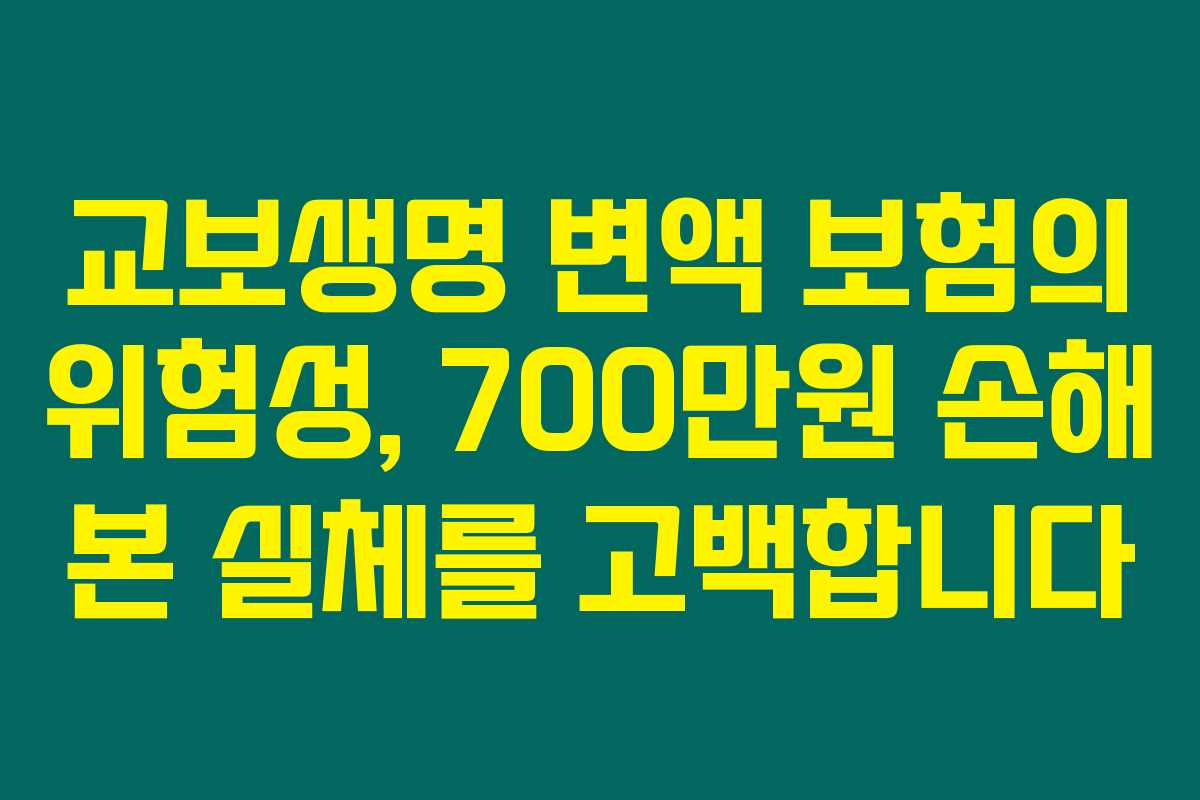 교보생명 변액 보험의 위험성, 700만원 손해 본 실체를 고백합니다