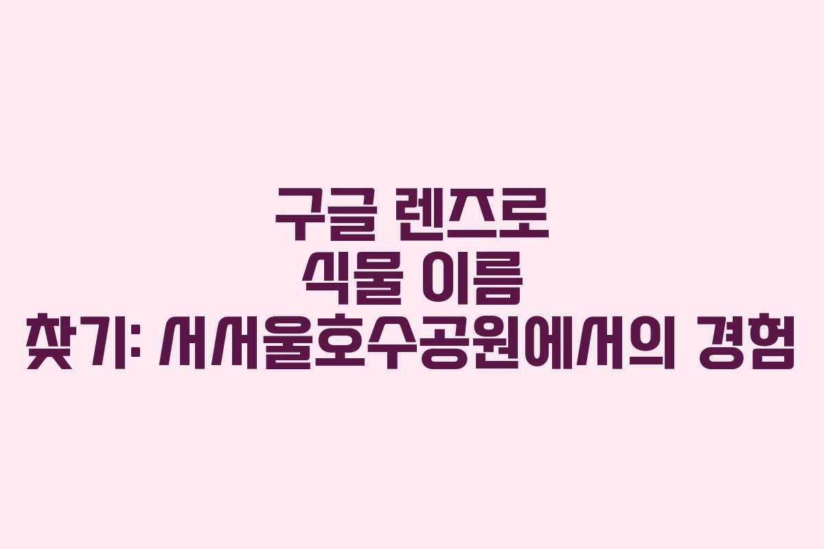 서서울호수공원에서의 산책을 통해 구글 렌즈를 활용하여 식물 이름을 찾는 재미를 느낄 수 있었습니다. 자연 속에서의 발견은 항상 새로운 행복을 가져다주는 것 같습니다.