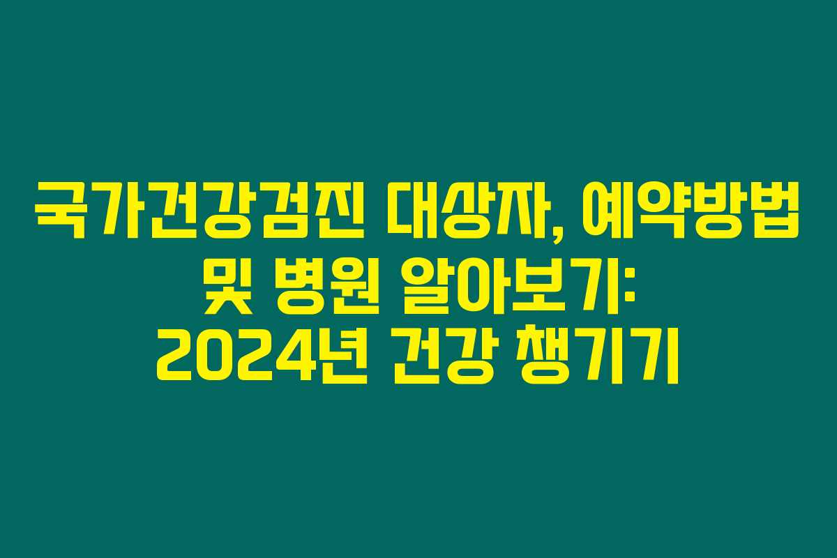 국가건강검진은 국민의 건강을 지키기 위한 필수 과정이에요. 2024년의 건강검진 대상자는 누가 될까요? 어떻게 예약하고, 병원은 어디에서 받을 수 있을까요? 아래를 읽어보시면 궁금증이 모두 해결될 거예요!