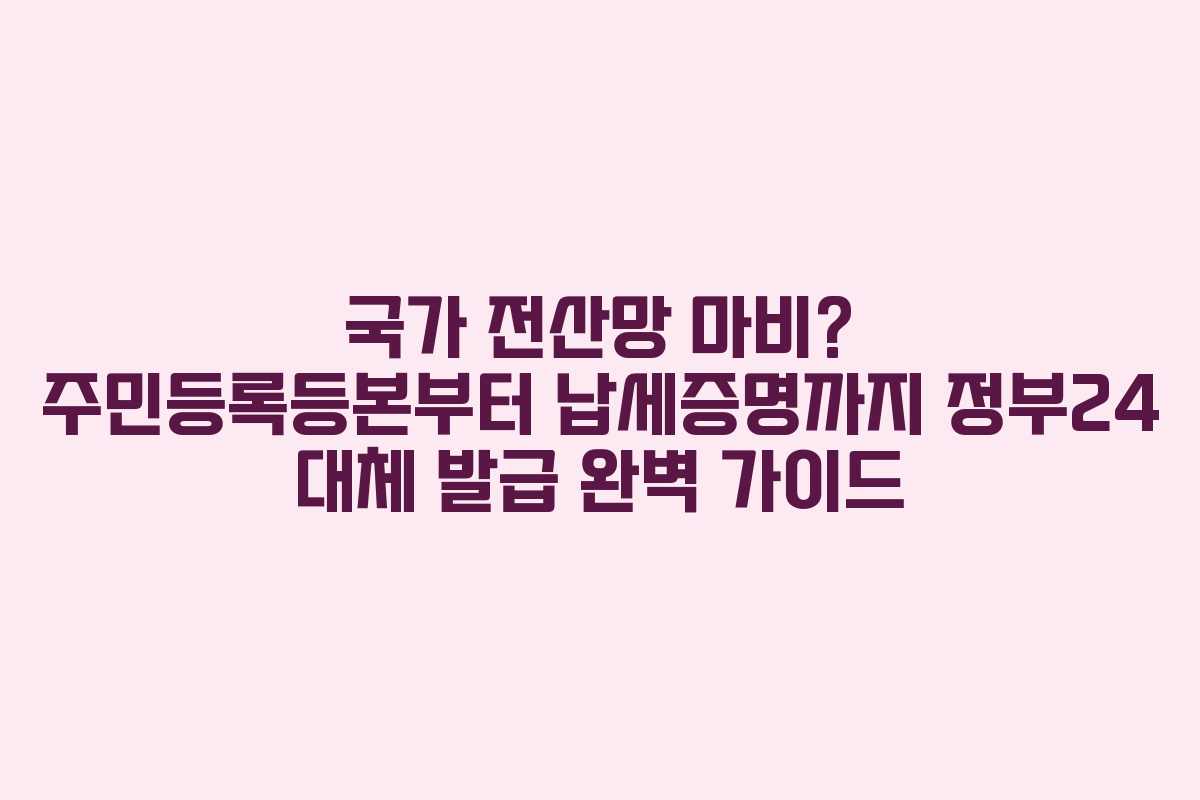 정부24 서비스가 중단되면 필요한 증명서 발급이 어려워질 수 있습니다. 그러나 걱정하지 마세요. 주민등록등본, 납세증명서, 건강보험자격확인서 등의 필수 서류는 대체 발급 경로를 통해 신속하게 받을 수 있습니다. 이 가이드를 통해 각 서류의 대체 발급 방법을 소개하겠습니다.