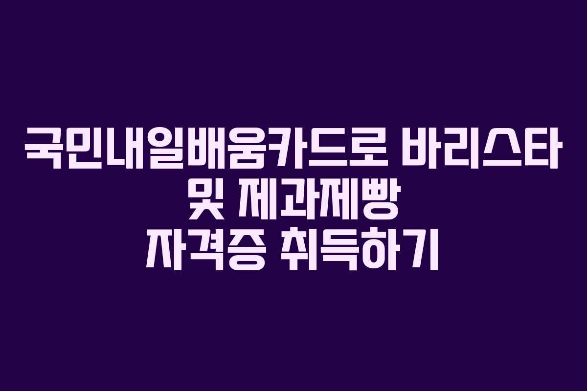 국민내일배움카드는 취업 준비생, 이직을 희망하는 분, 경력을 쌓고 싶은 재직자, 새로운 취미를 찾고 있는 중장년층을 위한 국비지원 교육 카드입니다. 이 카드를 통해 바리스타 및 제과제빵 자격증을 취득하는 방법을 자세히 알아보겠습니다.
