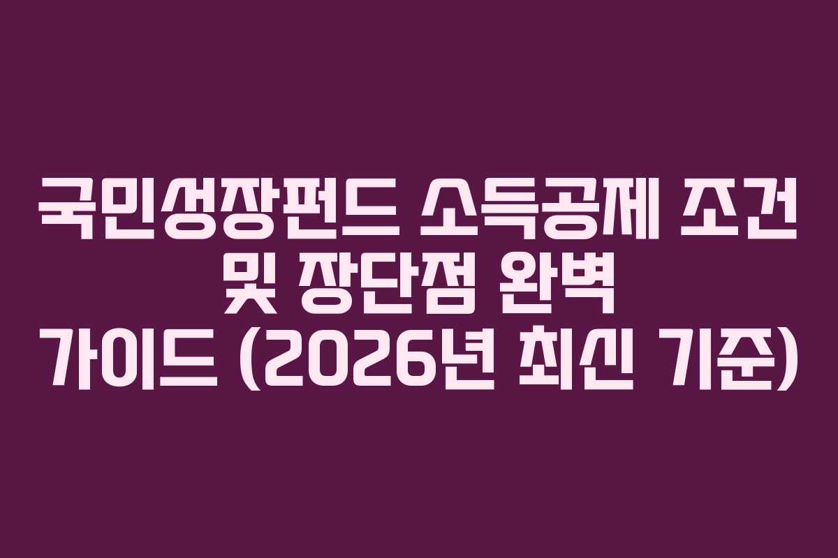 국민성장펀드 소득공제 조건 및 장단점 완벽 가이드 (2026년 최신 기준)