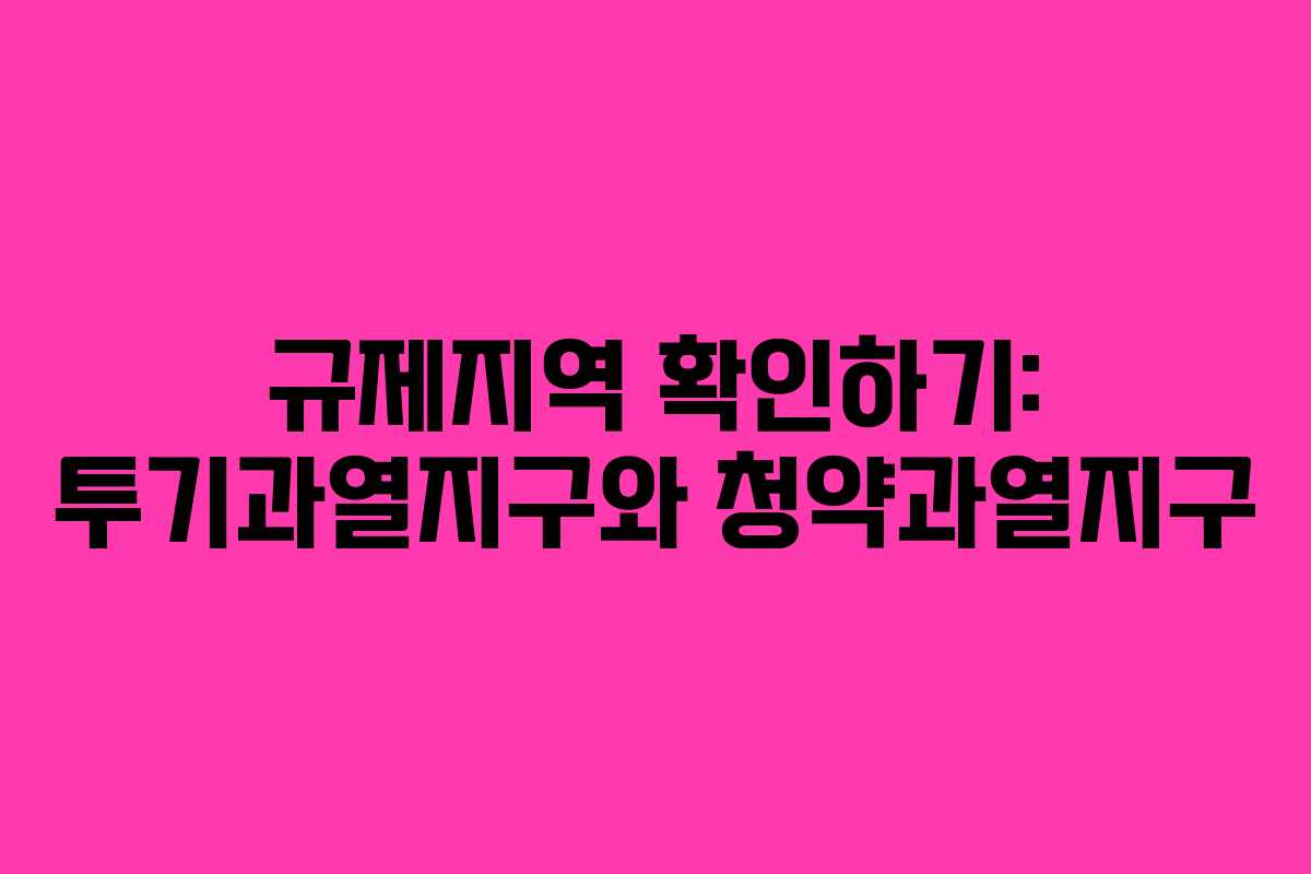 부동산 시장의 안정화와 투기 방지를 위해 규제지역의 확인은 매우 중요합니다. 특히, 투기과열지구와 청약과열지구는 주택 시장에 직접적인 영향을 미치는 지역이므로, 이에 대한 정확한 이해가 필요합니다.