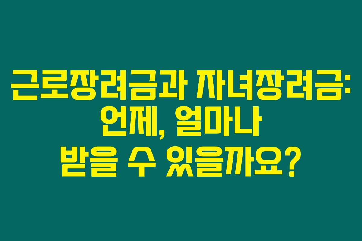 제가 직접 리서치해본 바로는 근로장려금과 자녀장려금은 저소득 가구를 위한 매우 중요한 정책입니다. 이 두 제도가 어떻게 운영되는지, 지급일과 산정 기준 등에 대해 자세히 알아보았습니다. 아래를 읽어보시면 근로장려금과 자녀장려금의 이해에 큰 도움이 될 거예요.