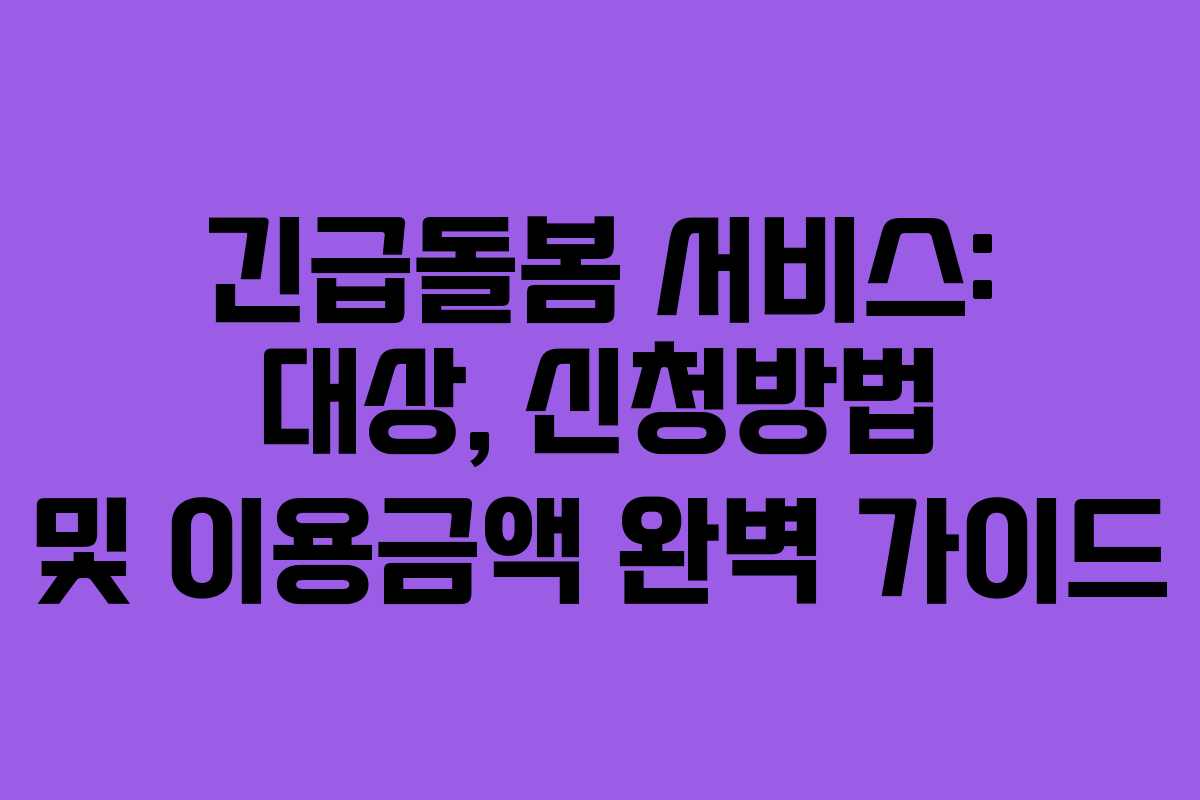 이 글을 통해 긴급돌봄 서비스에 대한 정보를 잘 이해하시고, 필요할 때 적절히 활용하시기 바랍니다.