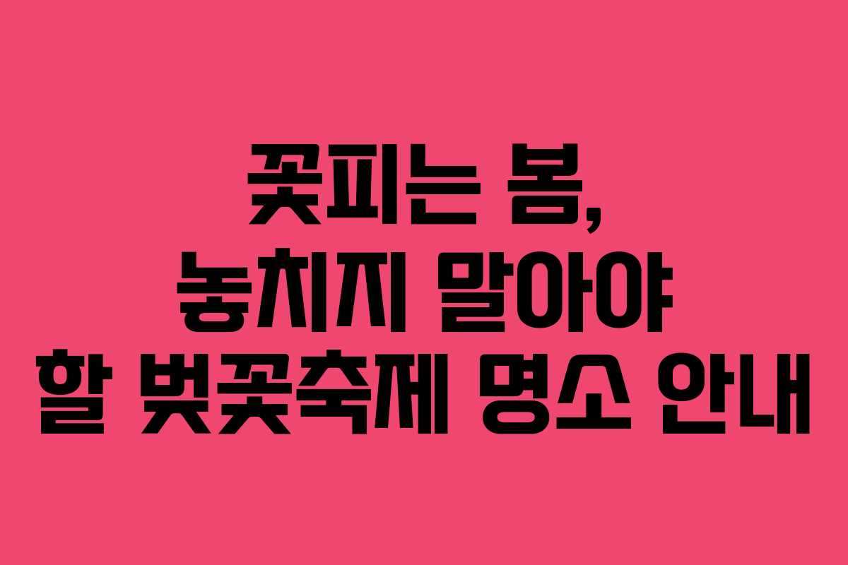 봄이 찾아오면 전국 각지에서 벚꽃이 만개하며 아름다운 풍경을 선사합니다. 벚꽃을 즐길 수 있는 명소는 많지만, 이번에는 2026년 기준으로 꼭 가봐야 할 축제를 소개하겠습니다. 각 장소의 특징과 장단점을 함께 살펴보겠습니다. 이 정보를 바탕으로 봄나들이 계획에 도움이 되길 바랍니다.