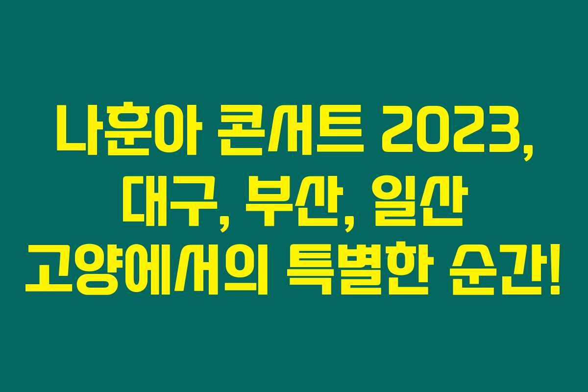 2023년 나훈아 콘서트는 팬들과 함께하는 특별한 순간이 될 것입니다. 대구, 부산, 일산에서의 공연을 놓치지 마시고 모두 즐기시길 바랍니다. 곧 있을 공연에서 만나요!