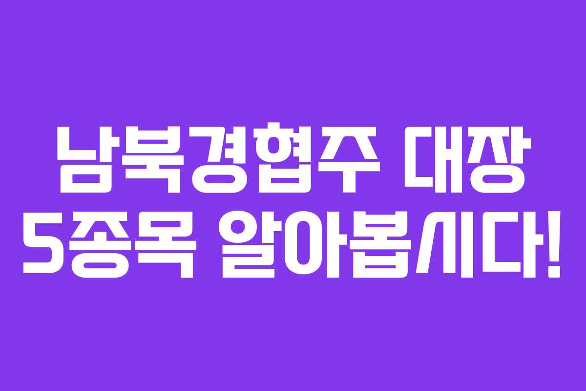 최근 남북 경제협력에 대한 기대가 커지면서 관련 주식들에 대한 관심이 높아지고 있습니다. 남북경협주는 남북관계의 변화에 따라 주가 변동성이 크기 때문에, 투자 시 주의가 필요합니다. 이번 글에서는 대표적인 남북경협주 5개 기업의 주가 전망과 차트 분석을 살펴보겠습니다.