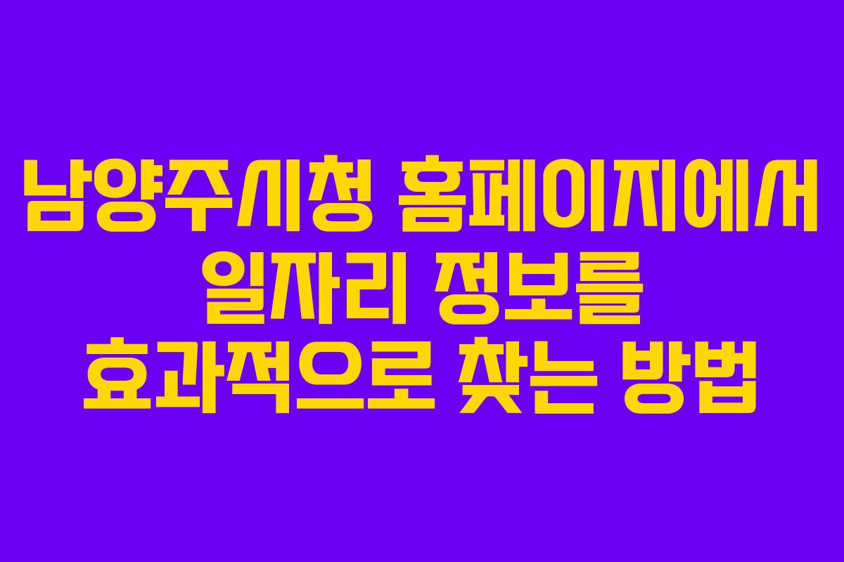 남양주시청 홈페이지에서 구인구직 정보를 찾기 위한 실전 가이드를 아래와 같이 정리하였습니다.