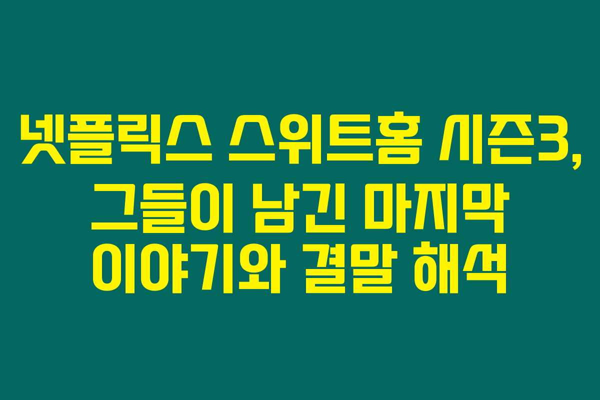 넷플릭스 스위트홈 시즌3, 그들이 남긴 마지막 이야기와 결말 해석