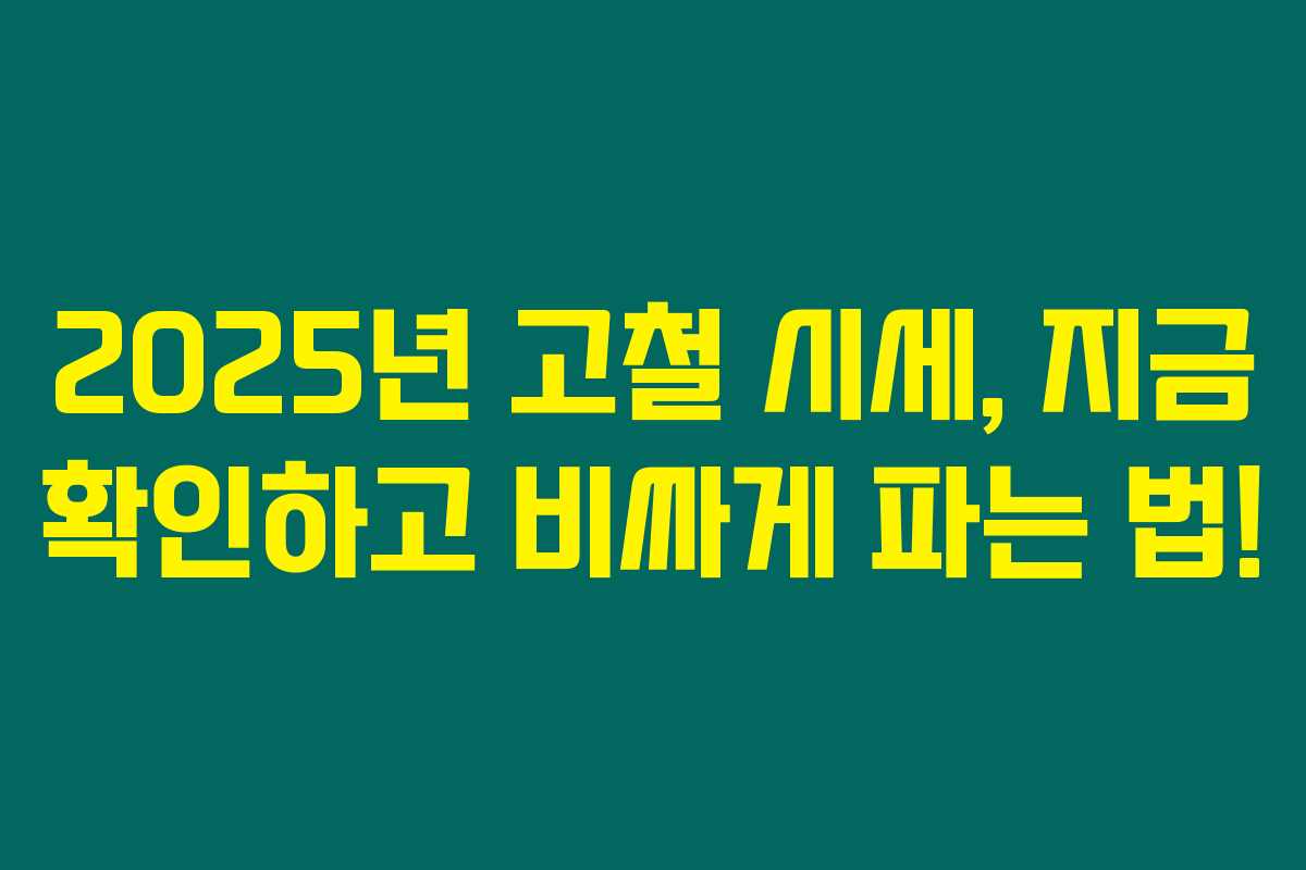 2025년 오늘의 고철 시세가 궁금하시다면 주목하세요! 매일 바뀌는 고철 가격은 원자재 시장과 글로벌 경제에 큰 영향을 받습니다. 고철을 거래하려고 하신다면 최신 시세를 꼭 체크해야 합니다. 원하시는 가격에 고철을 사고파는 방법을 아래에서 알아보세요.