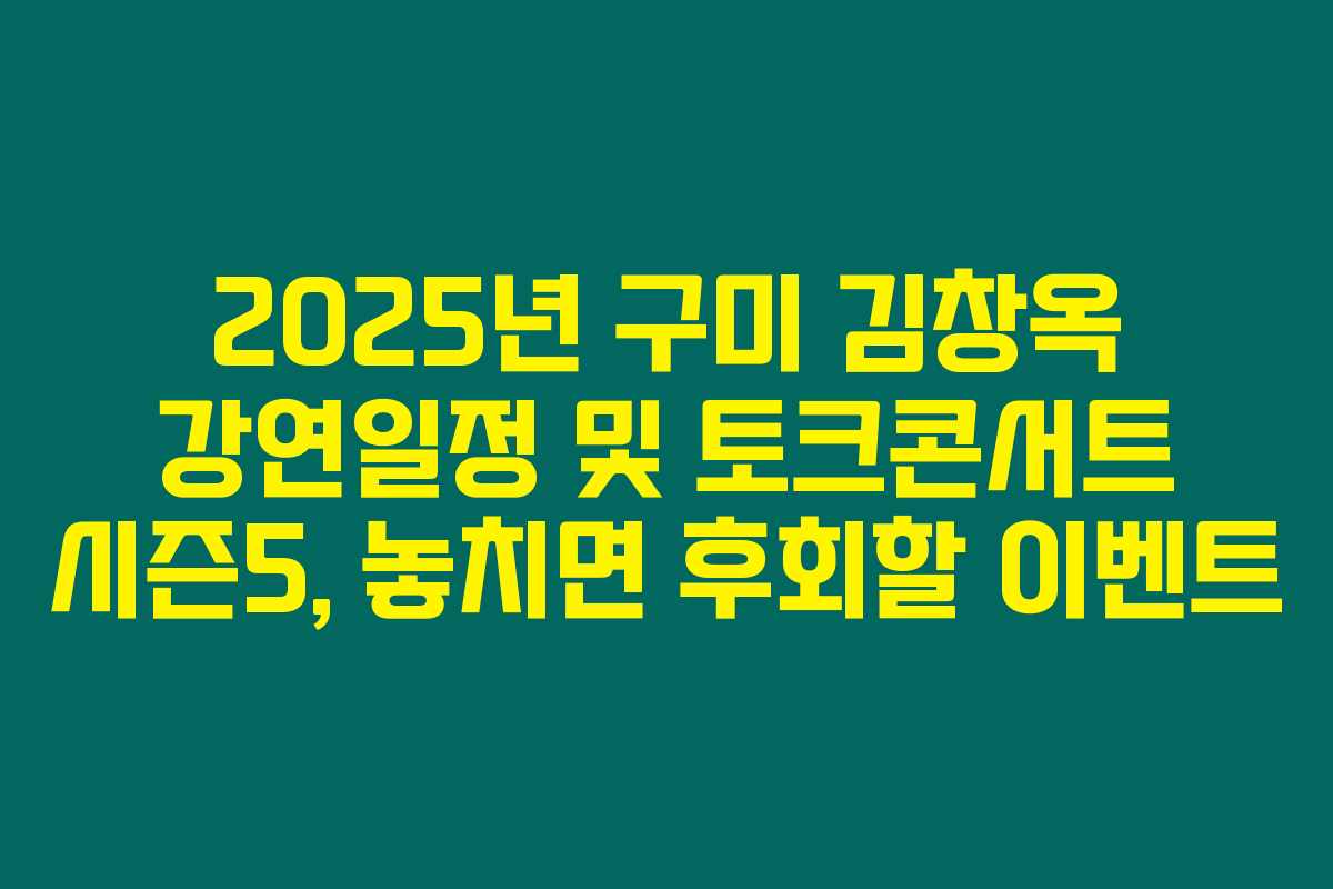 이렇게 많은 정보를 확인하셨나요? 2025년 구미에서 진행되는 김창옥 강연은 정말 놓치면 후회할 소중한 시간입니다. 강연의 매력을 경험하고 싶다면 지금 바로 예매하시고, 특별한 순간을 만들어 보세요!
