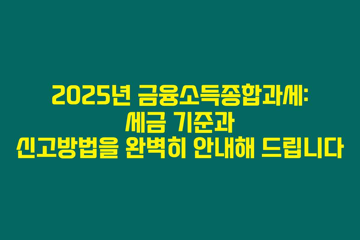 2025년 금융소득종합과세에 대해 제가 직접 알아본 결과, 이자소득과 배당소득이 일정 금액을 초과할 경우 종합소득으로 포함되어 과세되는 제도입니다. 이 포스팅에서는 2025년 금융소득종합과세의 기준과 신고 방법에 대해 상세히 안내드리니 끝까지 읽어보세요!