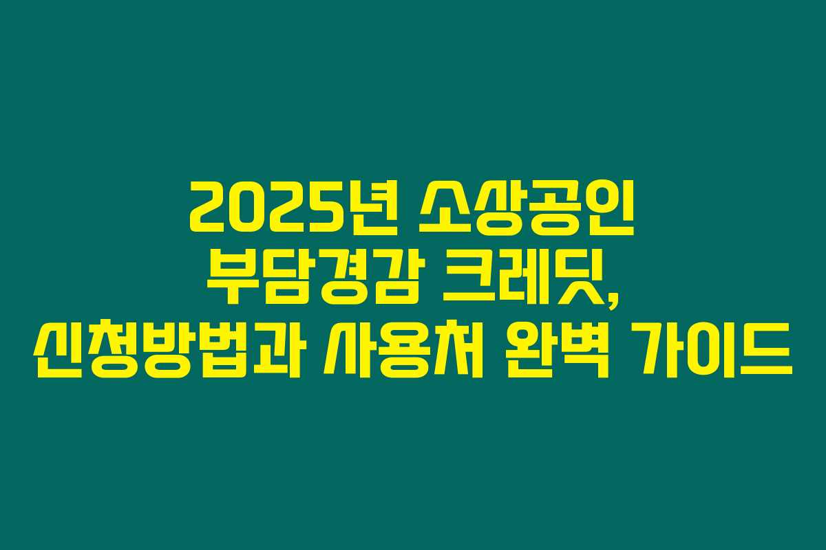 2025년부터 시행되는 소상공인 부담경감 크레딧은 고물가, 고금리, 매출 감소 등으로 어려움을 겪고 있는 소상공인을 위한 정책입니다. 아래를 읽어보시면 신청 자격, 절차, 사용처, 유의 사항 등에 대해 자세히 알아보실 수 있습니다. 이 기회를 통해 실질적인 경영 부담을 덜어보세요!