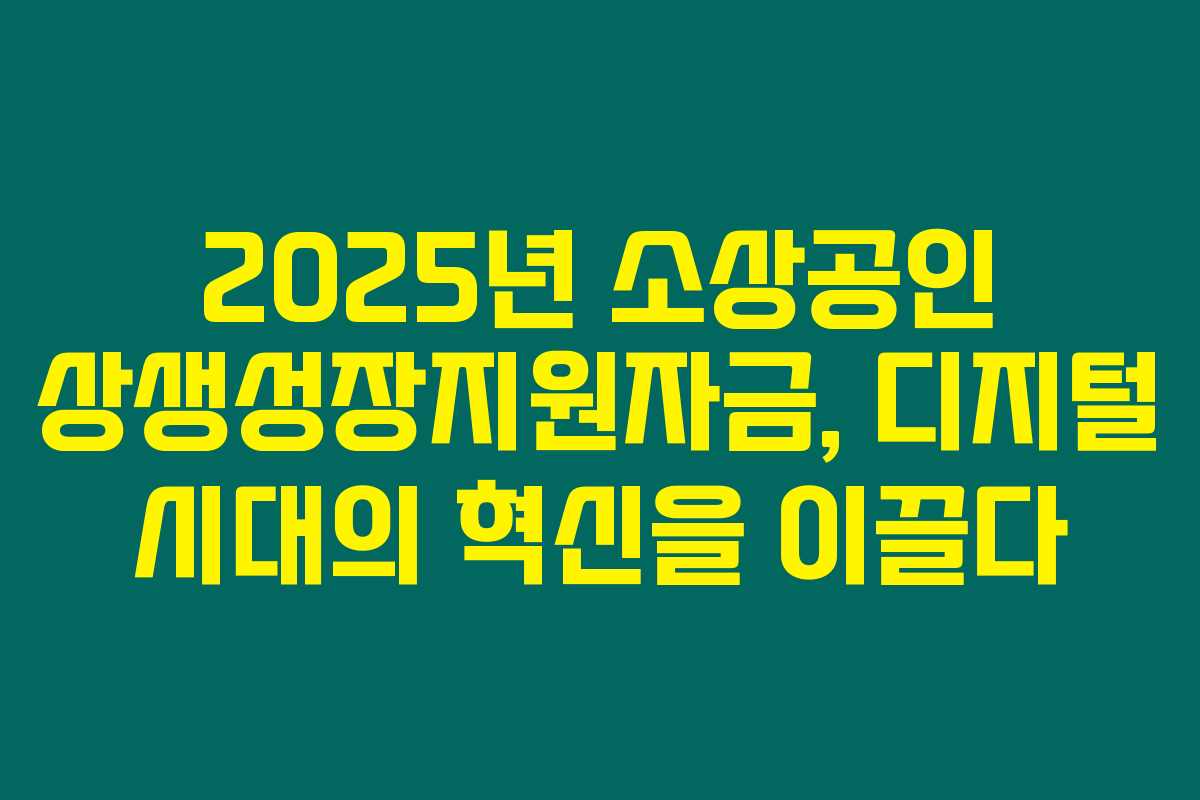 2025년 소상공인 상생성장지원자금, 디지털 시대의 혁신을 이끌다