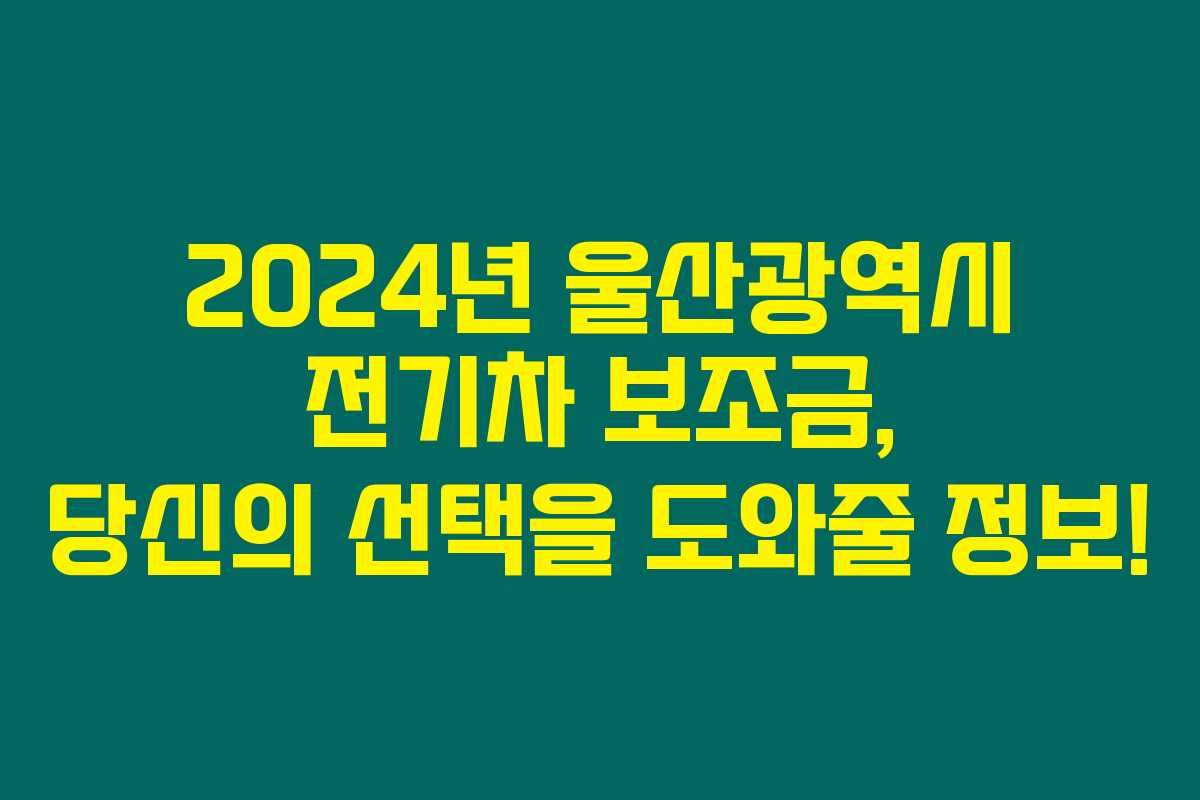 울산에서 전기차 구매를 고려하고 계신다면, 보조금 혜택을 잘 활용하셔서 경제적 부담을 줄이길 바랄게요. 전기차는 환경을 보호하는 선택이기도 하니, 더욱 많은 분들이 이 길에 동참했으면 좋겠어요.