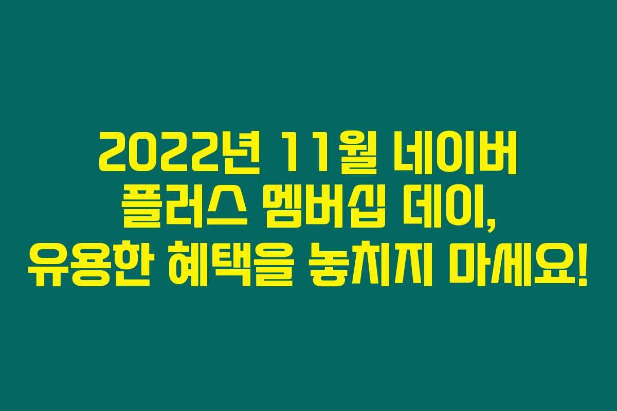 제가 직접 경험해본 결과로는, 2022년 11월 네이버 플러스 멤버십 데이 기간 동안 다양한 혜택이 준비되어 있었어요. 특히 쇼핑을 좋아하신다면, 이 기회를 꼭 활용해 보시는 게 좋답니다. 아래를 읽어보시면, 11월 13일부터 15일까지의 혜택과 유의사항을 알차게 정리했으니, 도움이 될 거에요!