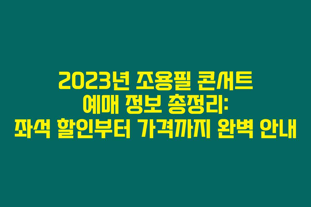 - 2. 조용필 콘서트 가격 및 좌석 정보