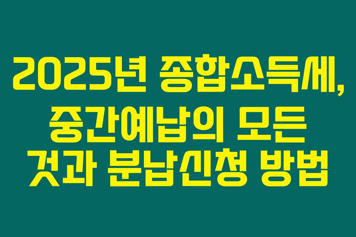 종합소득세 중간예납과 관련된 정보에 대해 상세히 알려드리겠습니다. 제가 직접 경험해본 결과로는, 개인사업자에게 있어 이 제도를 이해하고 준비하는 것이 매우 중요하답니다. 중간예납의 납부기한, 분납신청 방법 등 특히 유의할 점들을 안내해 드릴게요.