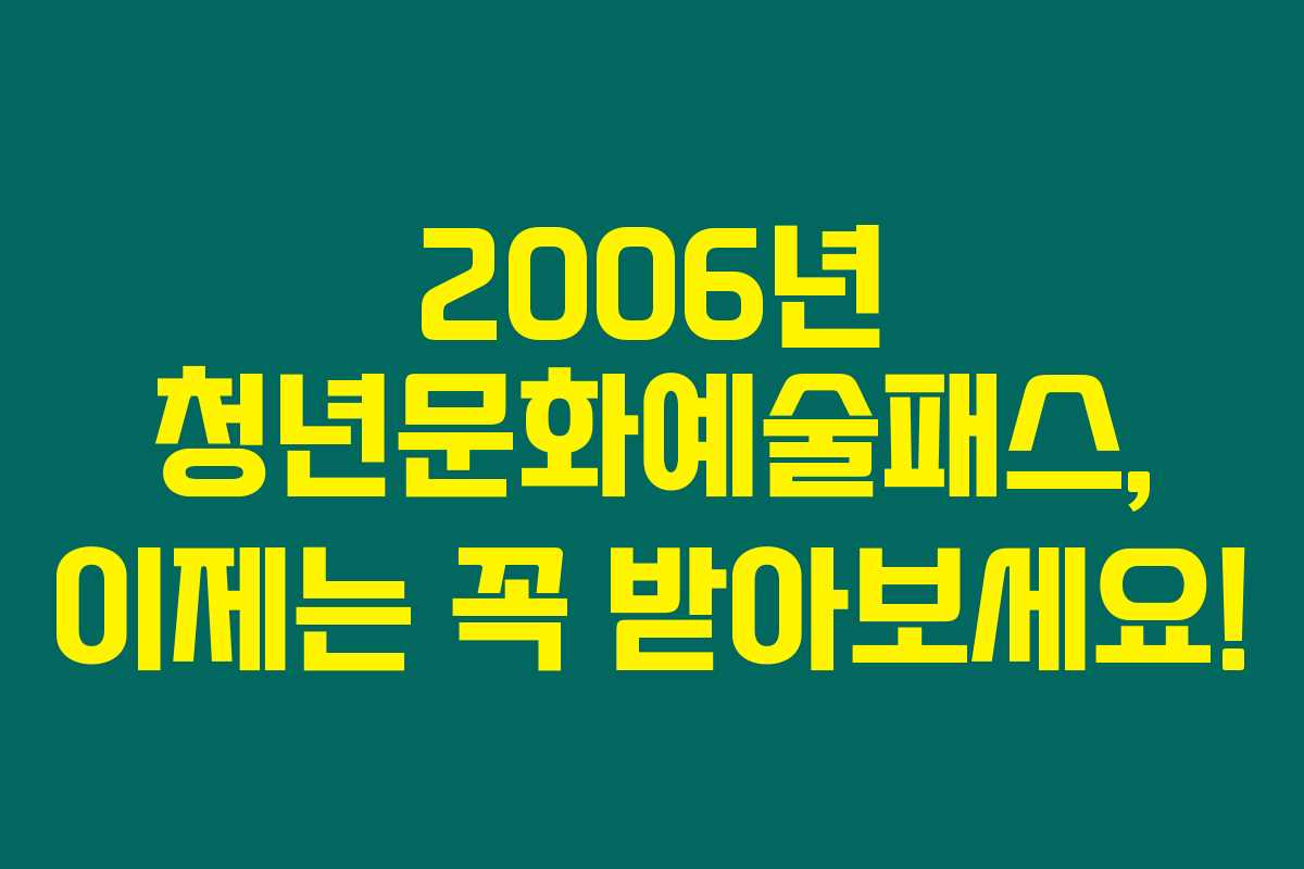마무리하자면, 청년문화예술패스는 2006년생 청년들에게 큰 문화적 기회를 제공합니다. 서둘러 신청하시고, 다양한 공연과 전시를 즐겨보세요! 정말 특별한 시간을 만들어 줄 것입니다.