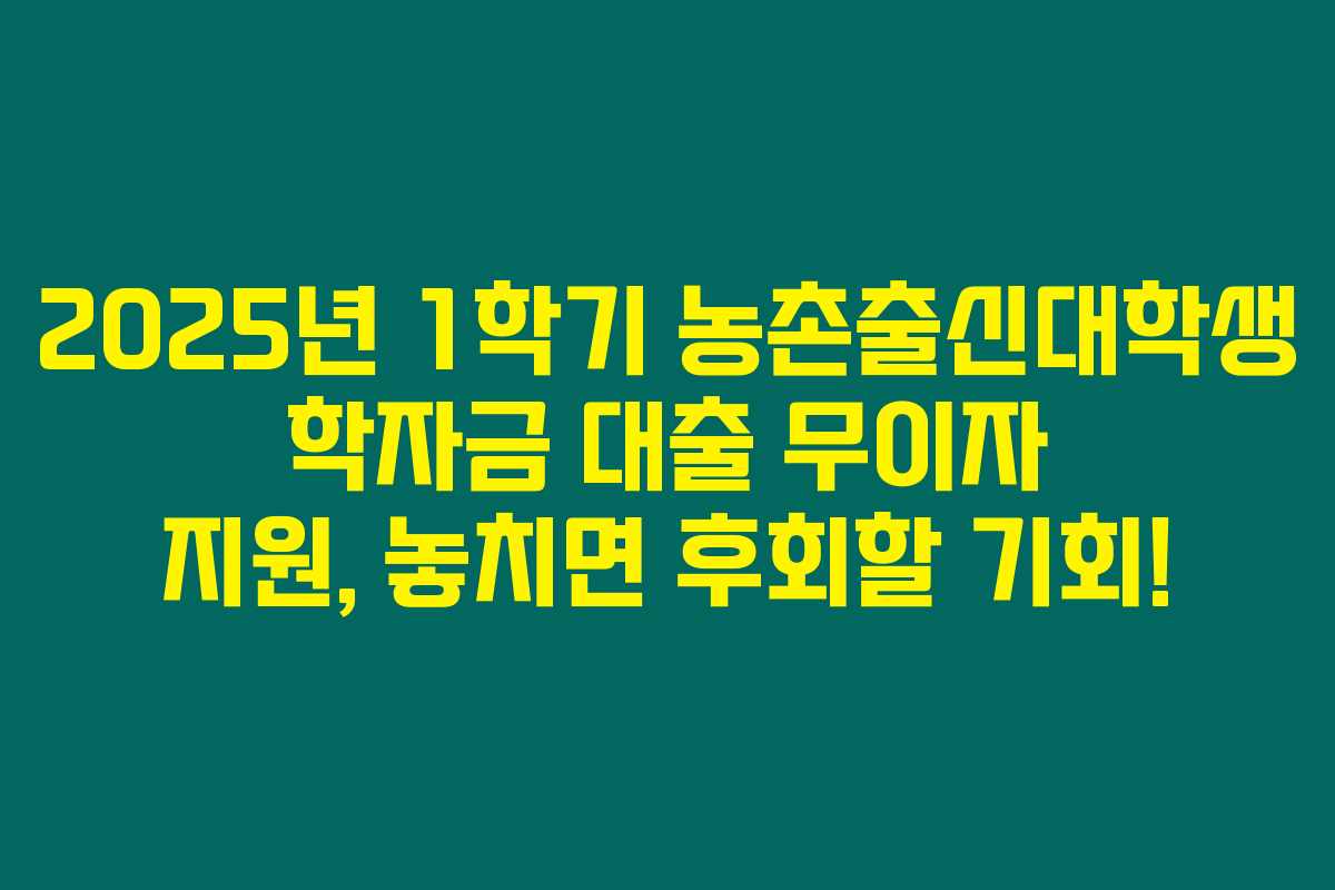 농촌출신 대학생 여러분을 위해 2025년 1학기 학자금 대출이 무이자로 지원된다는 소식인데요. 이 말을 듣고 “너무 좋은 기회인데 놓치면 어떻게 하지?” 라는 생각이 드신다면 주목해 주세요. 농촌 지역에 사는 대학생들에게 정말 큰 힘이 될 지원 안건이에요. 아래를 읽어보시면 이 무이자 대출의 지원 내용 및 신청 방법 등에 대해 자세히 알 수 있습니다!