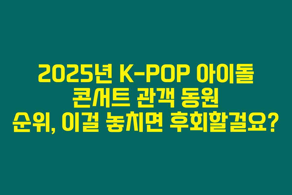 2025년 K-POP 아이돌 콘서트 관객 동원 순위, 이걸 놓치면 후회할걸요?