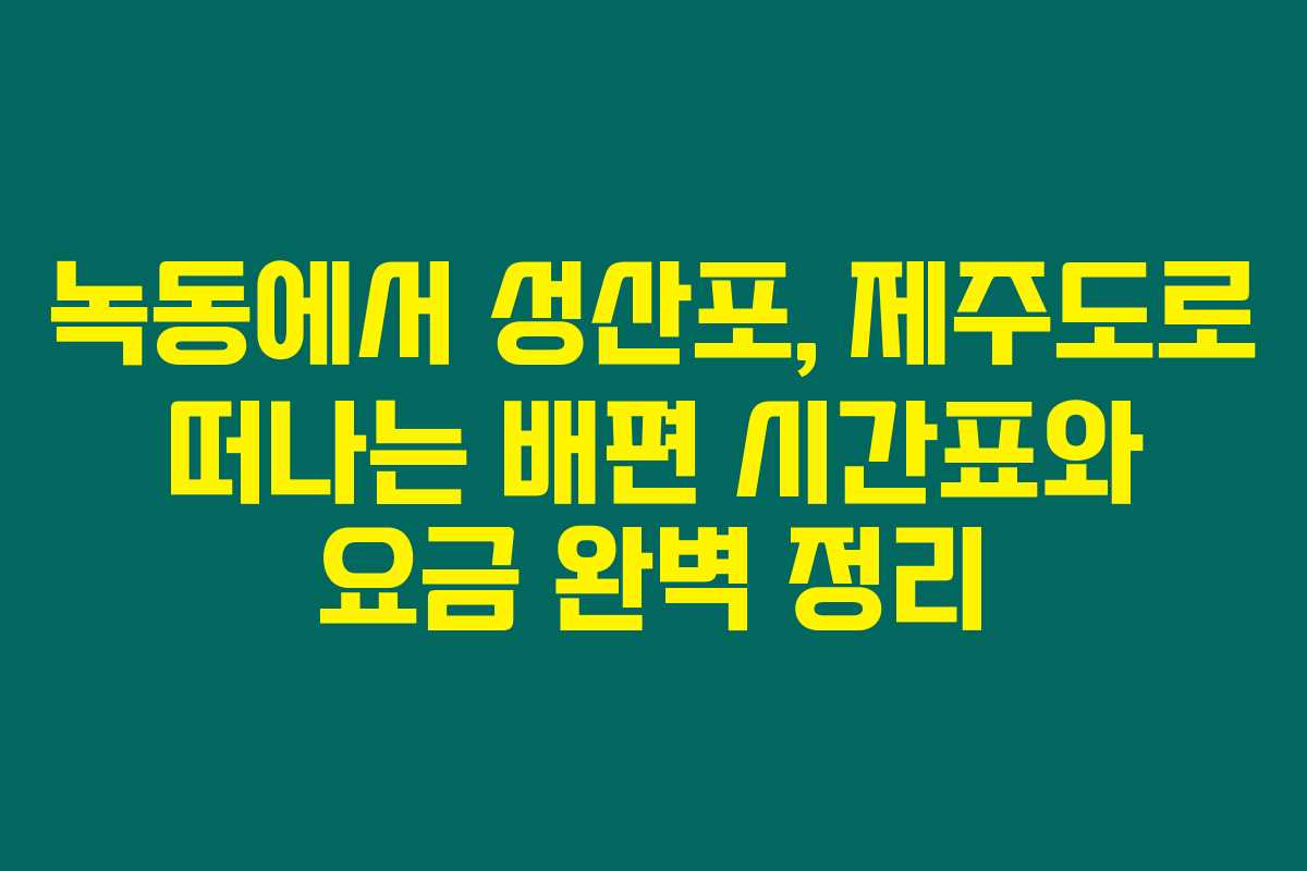 제주도를 가고 싶은 분들에게 녹동 성산포 제주도 배편 시간표와 요금 정보를 정리했어요. 안전하고 즐거운 여행이 되시길 바라며, 추가적인 정보가 필요하시다면 언제든지 연락해 주세요!