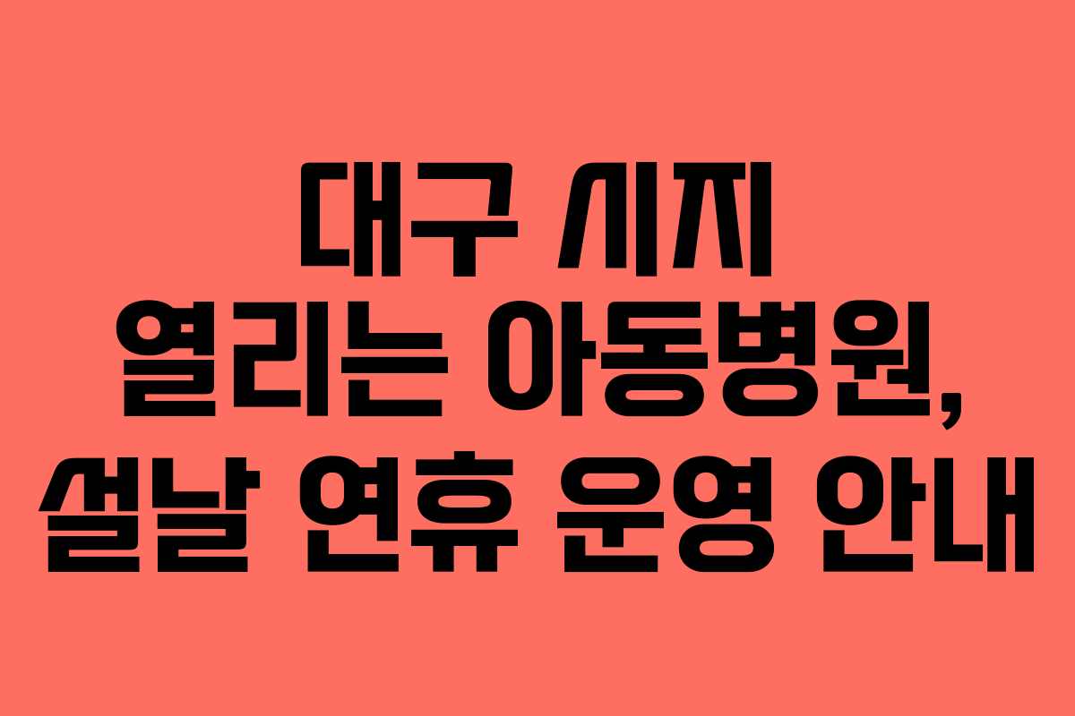 설날 연휴 동안 아이들이 아프면 걱정이 많습니다. 대구 시지 지역에서 연휴 기간에도 운영하는 아동병원을 알아보았습니다. 이 정보는 부모님들에게 큰 도움이 될 것입니다.