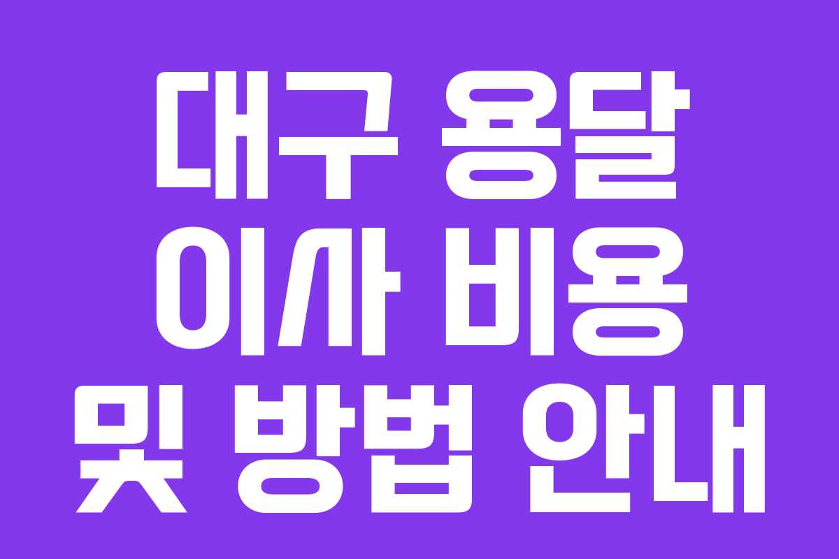 대구에서 용달 이사를 계획하고 계신가요? 이사 비용은 여러 요인에 따라 달라지므로, 필요한 정보와 비용 절감 방법을 알아보겠습니다.