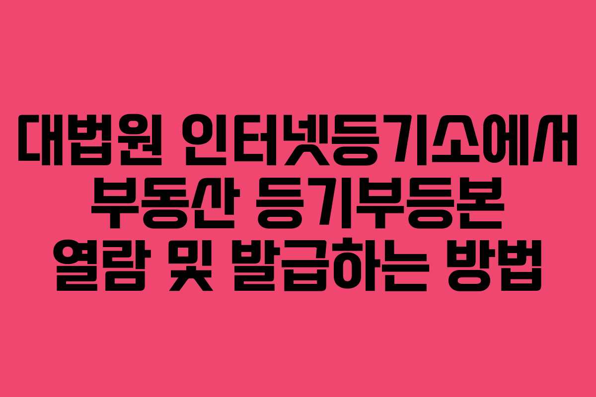 부동산 등기부등본을 온라인으로 열람하고 발급받는 방법에 대해 알아보겠습니다. 이 과정은 대법원 인터넷등기소를 통해 간편하게 진행할 수 있으며, 별도의 회원가입 없이도 이용할 수 있는 방법입니다.