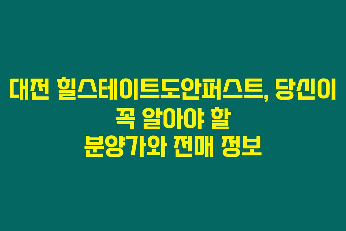 대전 힐스테이트도안퍼스트에 관심이 많으신가요? 대전에서 새롭게 개발되는 이 아파트는 특히 투자자와 실거주자들에게 많은 주목을 받고 있어요. 하지만 ‘대전 힐스테이트도안퍼스트의 분양가와 전매 제한’에 대해 고민하고 있다면 아래를 읽어보시면 많은 도움이 될 것 같아요. 실소유자의 권리를 지키기 위해서도, 전매 제한에 대한 이해는 매우 중요하거든요.