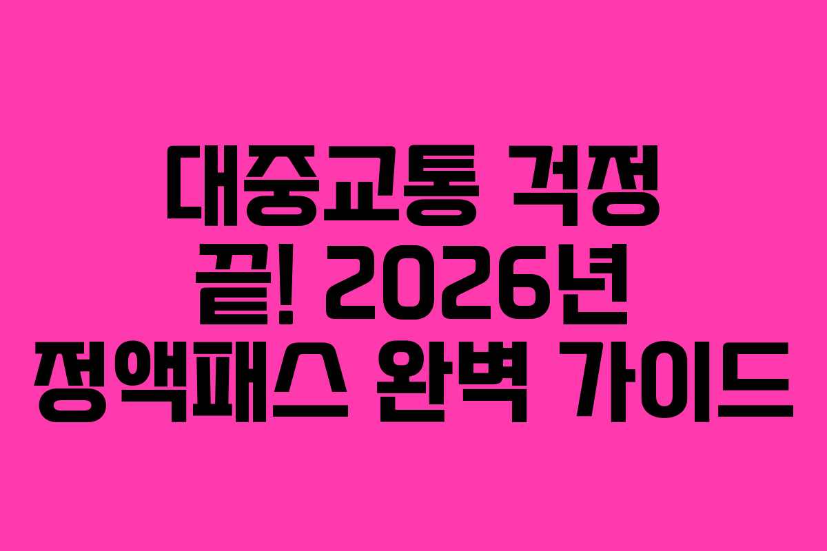 대중교통 걱정 끝! 2026년 정액패스 완벽 가이드