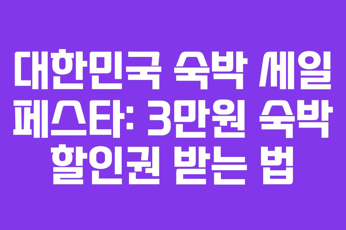 대한민국 숙박 세일 페스타는 문화체육관광부와 한국관광공사가 주관하여, 국민들의 국내여행을 장려하기 위해 마련된 이벤트입니다. 이번 행사는 숙박 할인권을 통해 지역 경제를 활성화하고, 건강하고 친환경적인 여행 문화를 확산하는 것을 목표로 하고 있습니다.