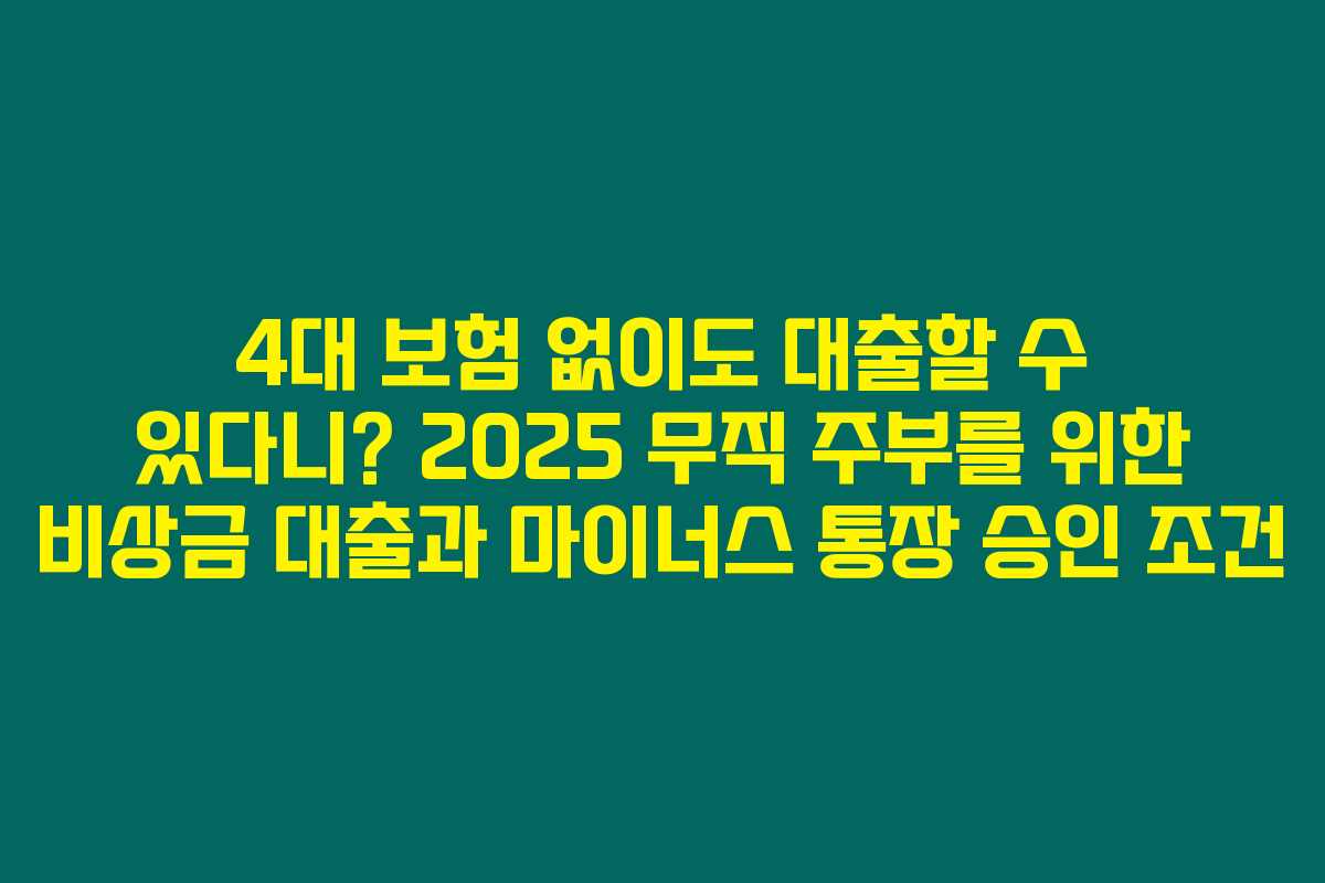 4대 보험 없이도 대출할 수 있다니? 2025 무직 주부를 위한 비상금 대출과 마이너스 통장 승인 조건