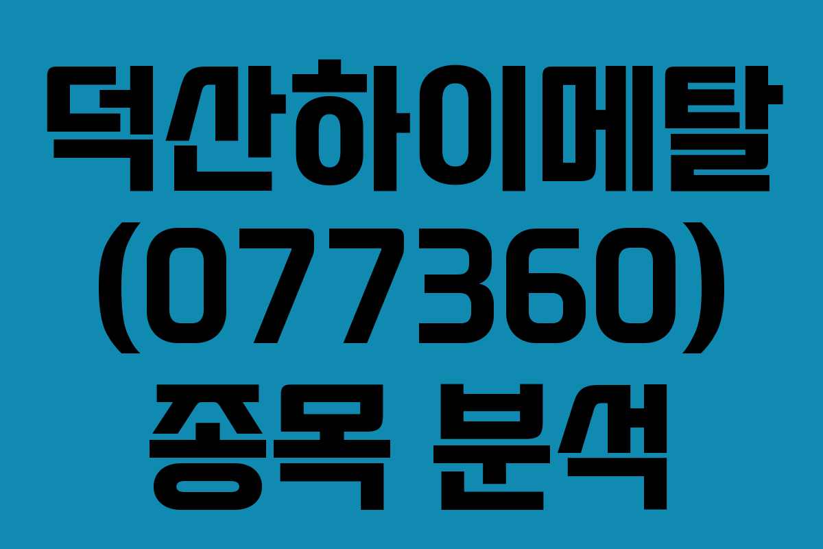 반도체 산업의 성장과 함께 덕산하이메탈의 매출 증가가 기대되지만, 영업 적자는 주의가 필요합니다.