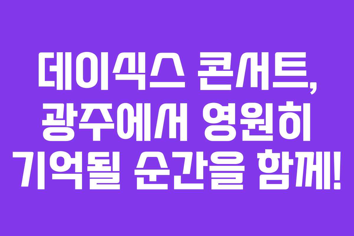 2025년, 데이식스가 드디어 광주에 옵니다! 이번 콘서트는 단순한 공연이 아닌, 팬들과의 특별한 만남이 될 것입니다. 이 글에서는 콘서트 정보부터 티켓팅 팁, 그리고 취소표를 잡는 방법까지, 데이식스의 광주 콘서트에 대한 모든 것을 자세히 살펴보겠습니다.