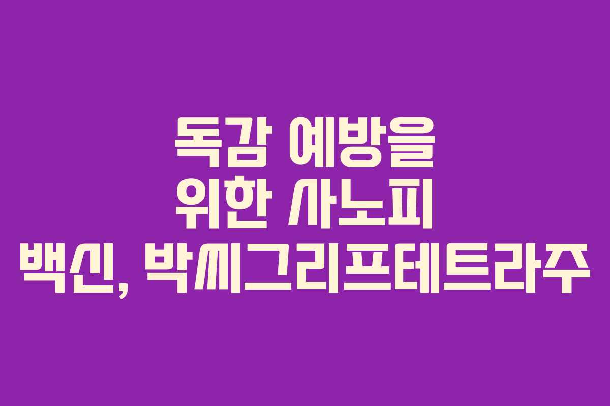 독감 예방접종은 겨울철 건강을 지키는 데 큰 도움이 됩니다. 사노피의 박씨그리프테트라주를 통해 안전하고 효과적인 예방접종을 받으시기 바랍니다.
